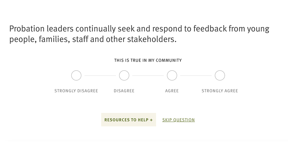 The self-assessment is designed for use by system practitioners, service providers, elected officials and community advocates — individually or in teams. Based on responses, users receive customized recommendations that identify opportunities for improvement and suggest clear next steps.